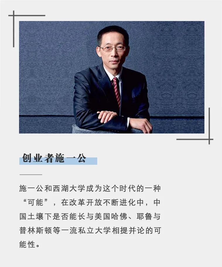而施一公和西湖大学成为这个时代的一种“可能”,在改革开放不断进化中,中国土壤下是否能长全球优质的、顶尖的民办高等教育机构,与美国哈佛、耶鲁与普林斯顿等一流私立大学相提并论的可能性。