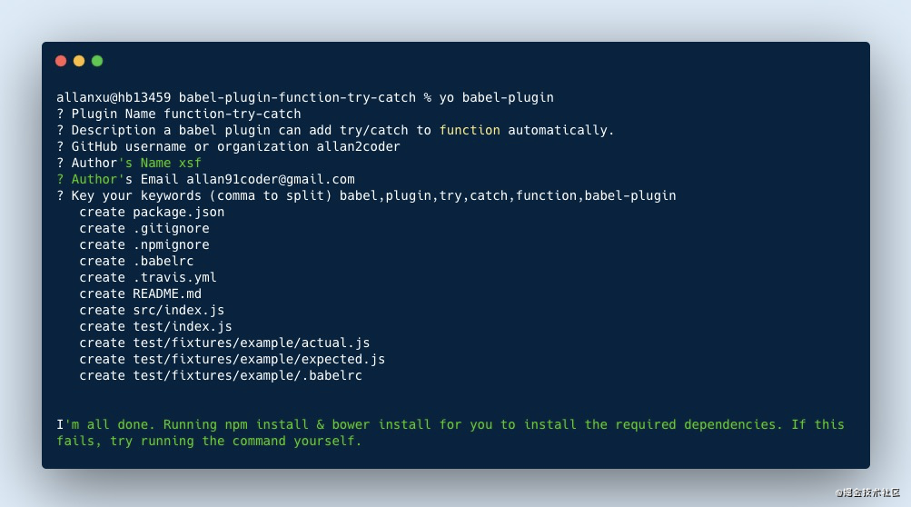 这就是我们的 Babel plugin,取名为 babel-loader-function-try-catch(为方便文章阅读,以下我们统一简称为plugin!)。