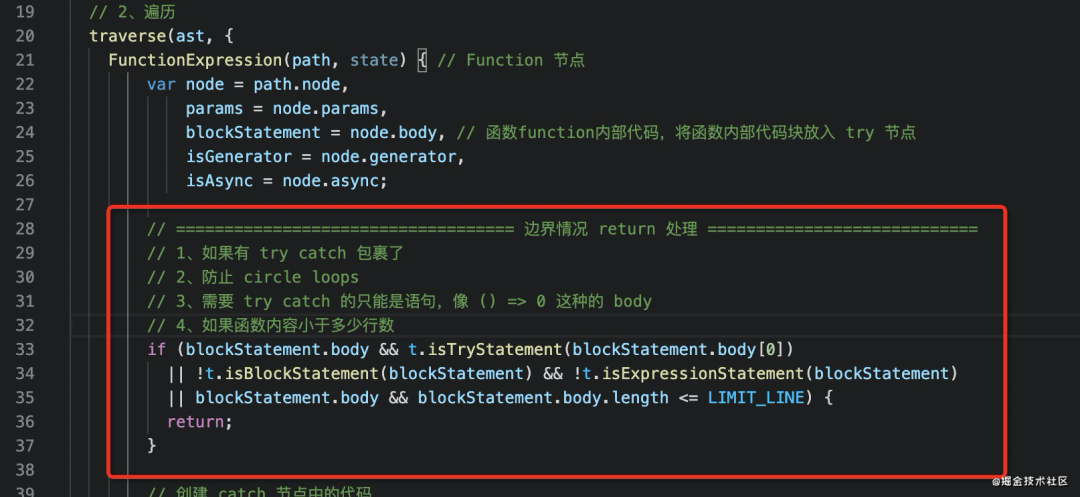 blockStatement = node.body, // 函数function内部代码,将函数内部代码块放入 try 节点