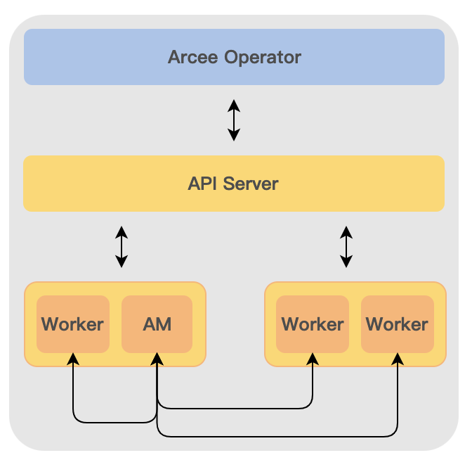 Arcee 借鉴了 YARN 的两级管理模式,管理大数据作业的 Application Master,再由 AM 管理计算 Worker。