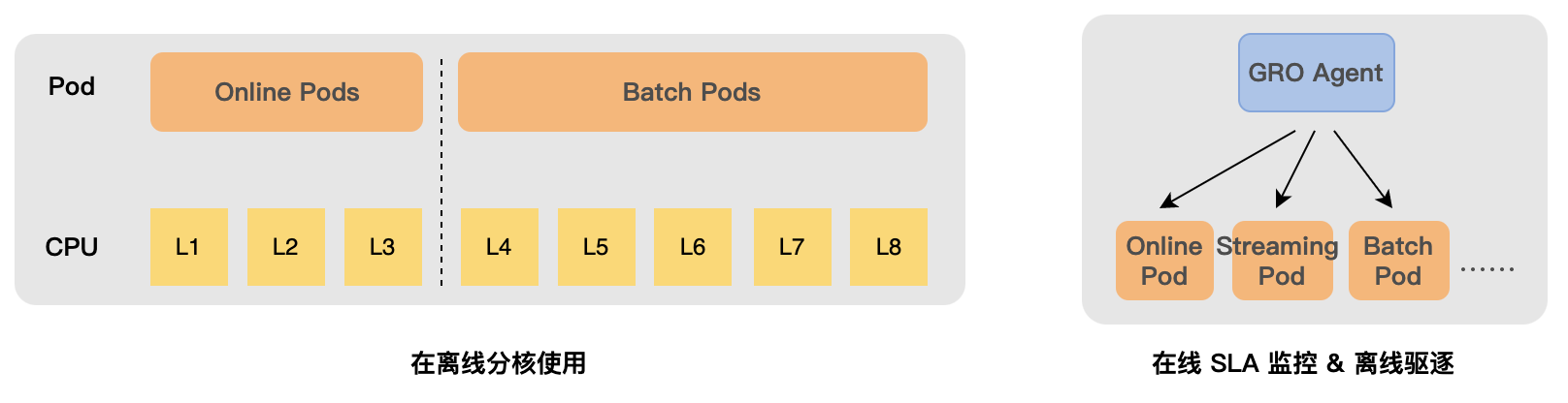 每个节点上,GRO Agent 负责单机调度和隔离增强。
