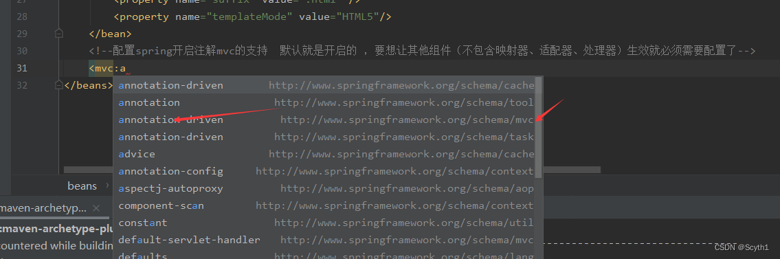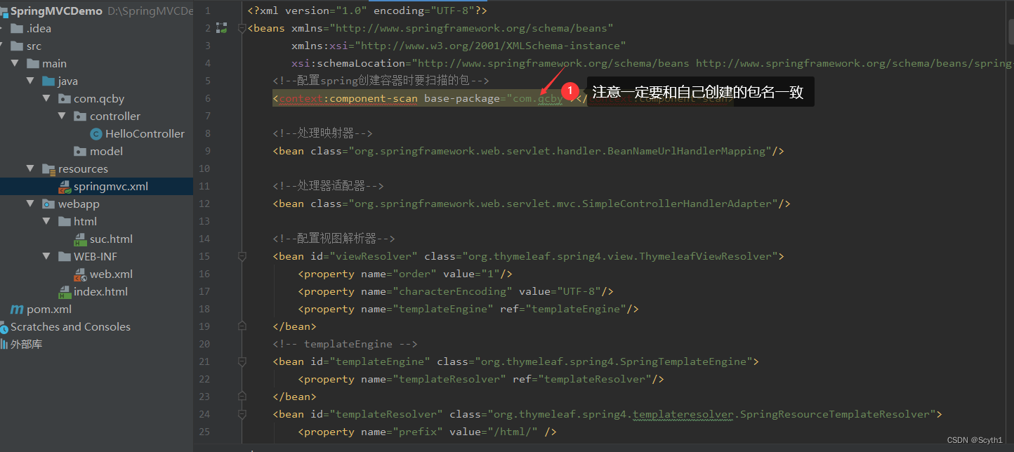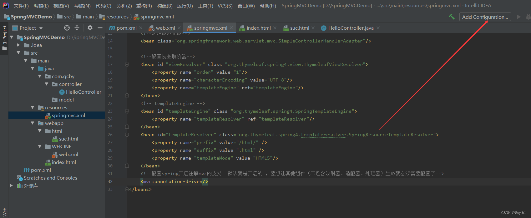 <!--springmvc.xml:指的是配置文件的名称:需要配置springmvc.xml,在下面-->