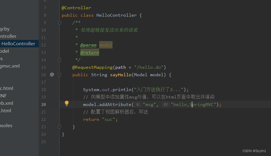 // 向模型中添加属性msg与值,可以在html页面中取出并渲染