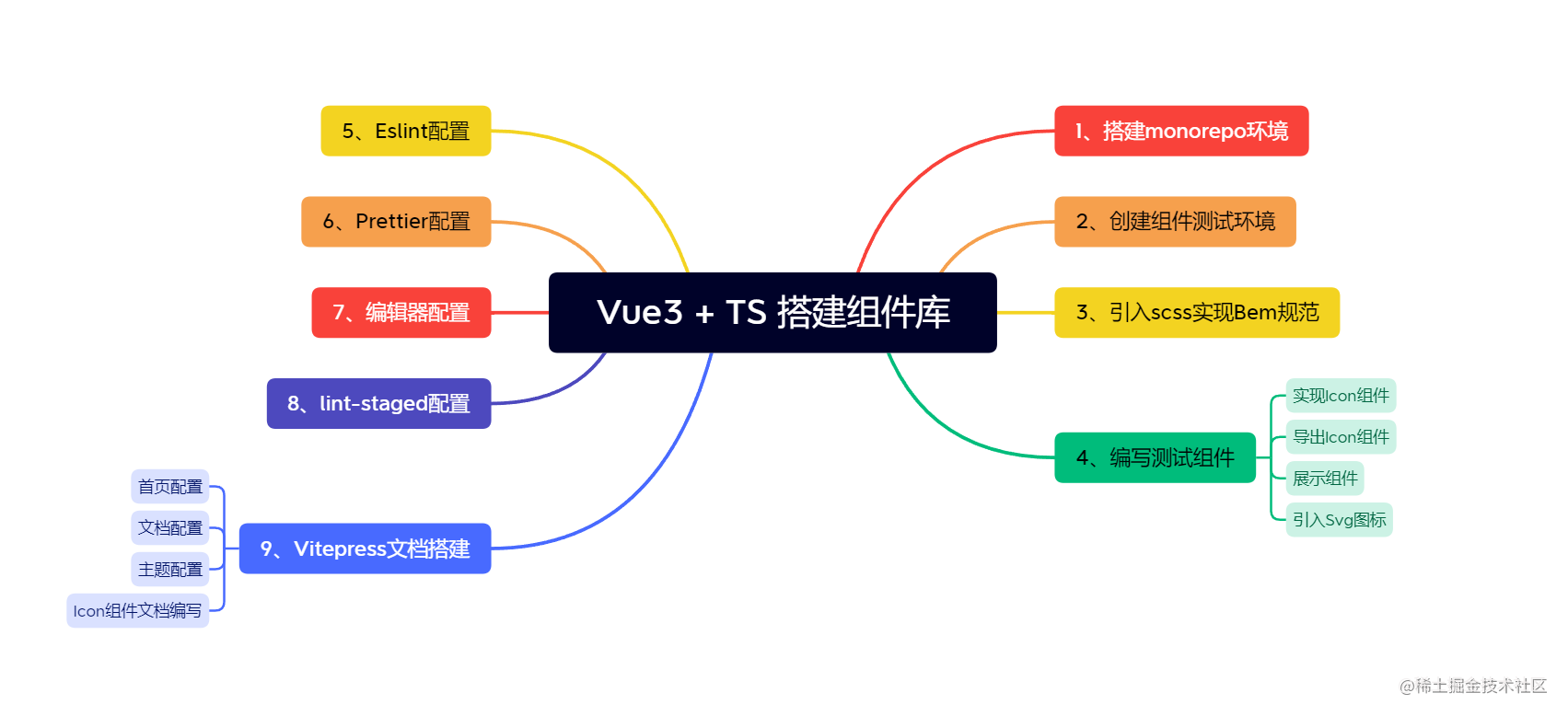 在编写组件库之前,我们首先要对整个代码项目的解构有一个清晰的划分,以及用到的大多数规范,和代码风格有一个约定,这篇文章主要就围绕着下面图中的几个问题展开描述一下。