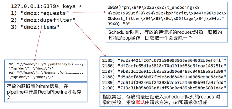 在scrapy_redis中,所有的带抓取的对象和去重的指纹都存在所有的服务器公用的redis中