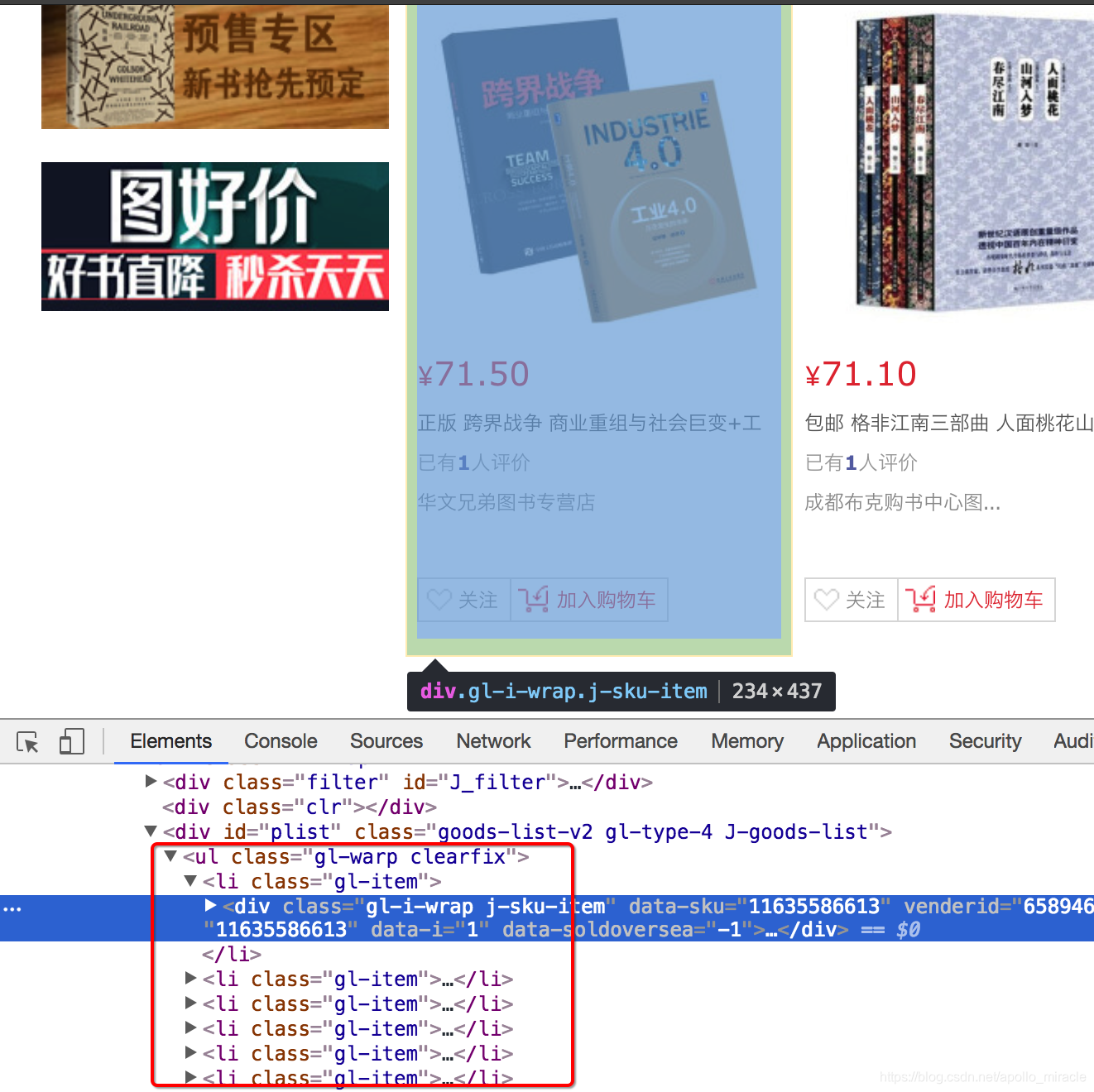 - 目标:抓取京东图书包含图书的名字、封面图片地址、图书url地址、作者、出版社、出版时间、价格、图书所属大分类、图书所属小的分类、分类的url地址
