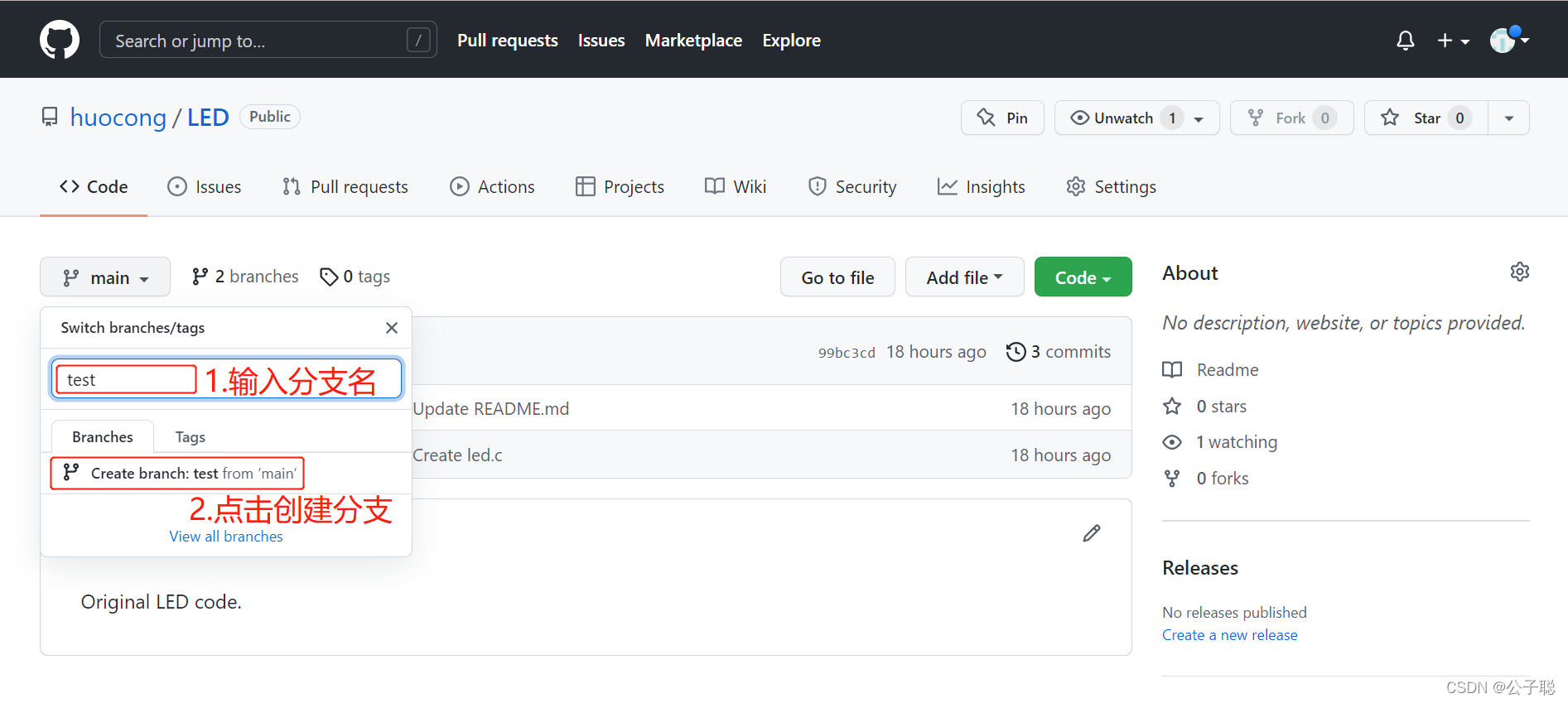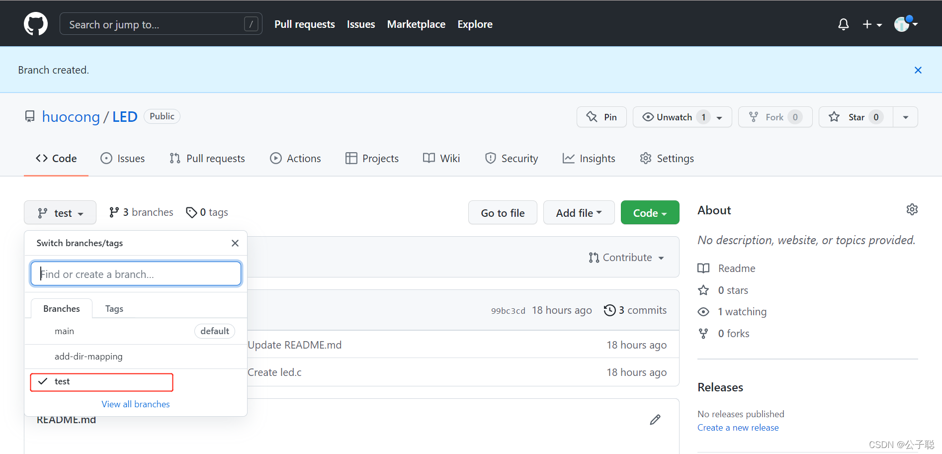 新建github分支,可以 直接在github仓库上创建 或者 通过git命令创建。