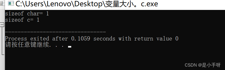 printf("sizeof char= %d\n", sizeof(char));