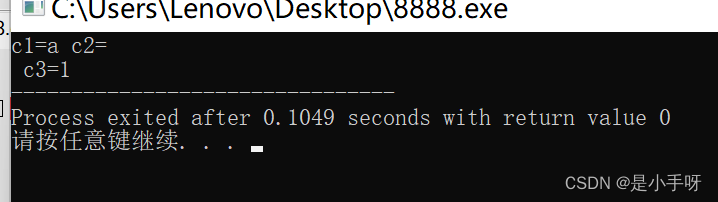 char c3 = '1';2)用字符占位符,打印这三个变量。输出结果为三个字符;