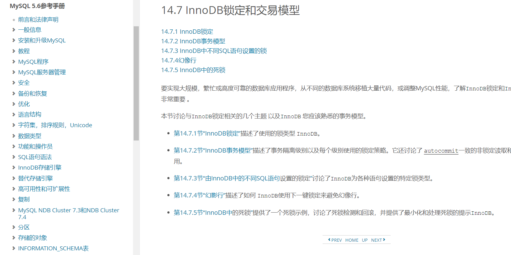 关于mysql的锁、优化、编码、索引、存储结果均在官方文档中给出,大家可参考: