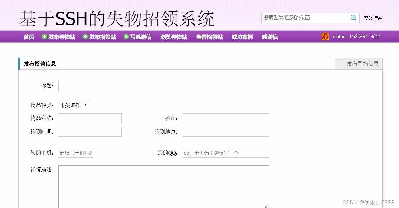 用户首页,用户登录,招领信息,寻物信息,留言感谢墙,在线交流模块,个人中心-查看招领信息,查看个人寻物记录,个人信息修改等功能。