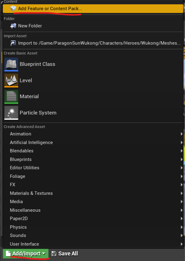 添加了虚幻官方提供的悟空角色