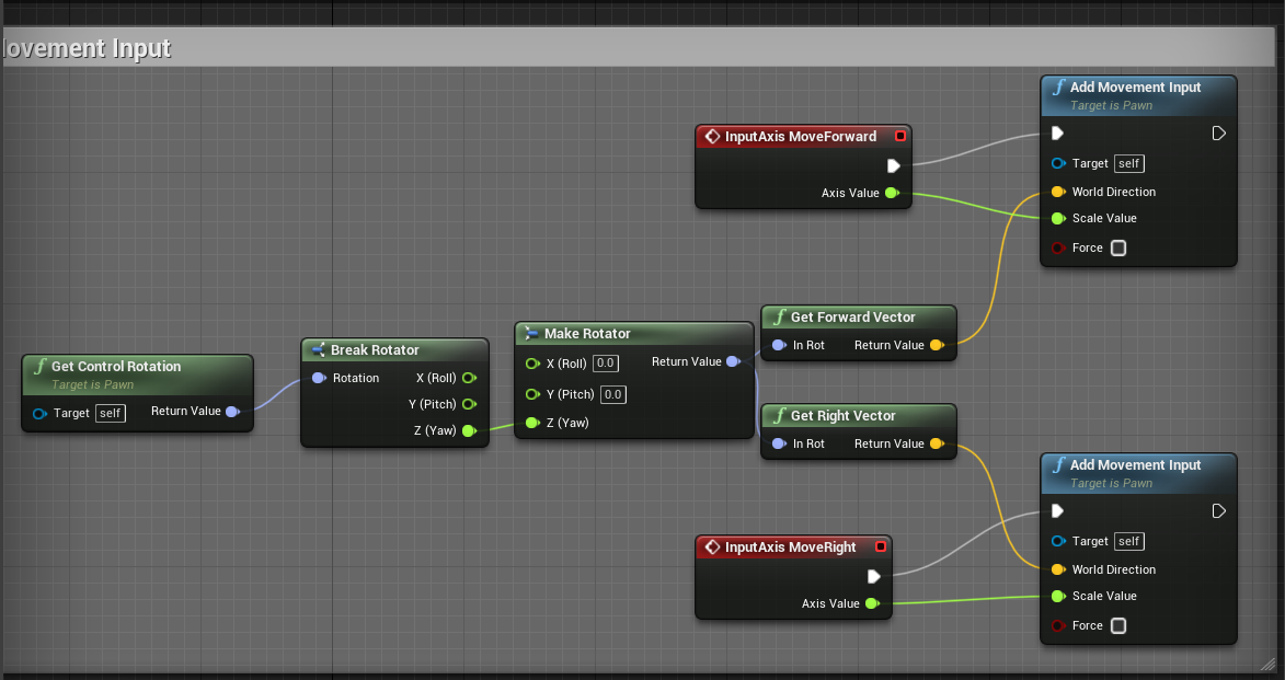 将键盘、控制器或鼠标输入映射到一个"友好的名称",该名称稍后将绑定到连续的游戏行为,例如移动。在轴映射(AxisMapping)中映射的输入会被持续轮询,即使当它们刚刚报告它们的输入值当前为零时也是如此。这可实现移动或其他游戏行为的平稳过渡,而不是由操作映射(ActionMapping)中输入所触发的离散游戏事件。