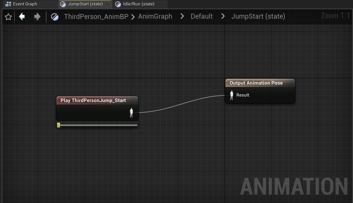 JumpStart:用户按下了空格键,IsInAir为真,,就进入了JumpStart的状态,此时就播放开始起跳的状态。