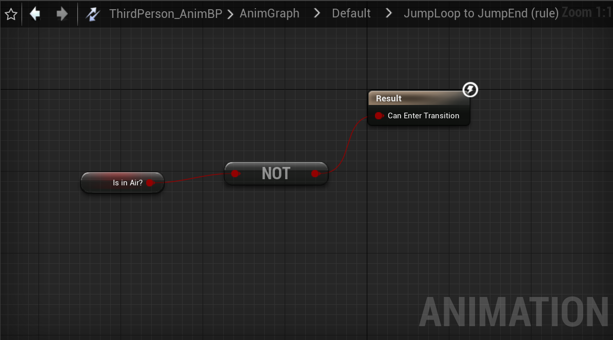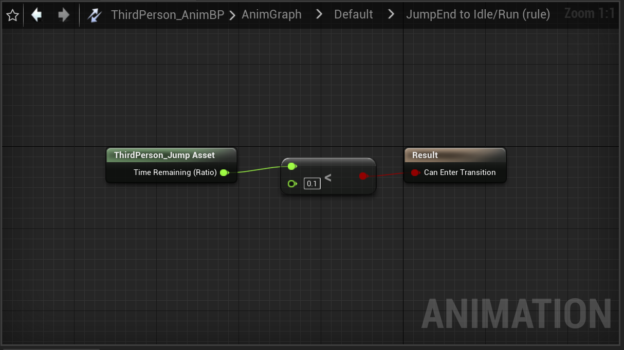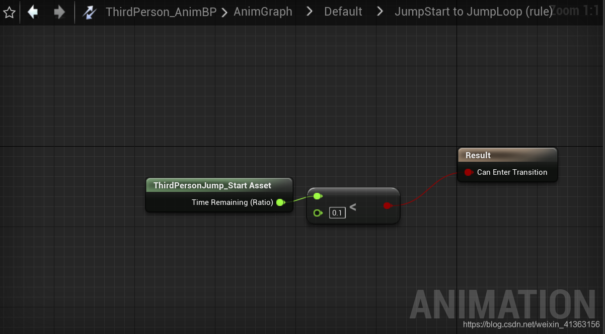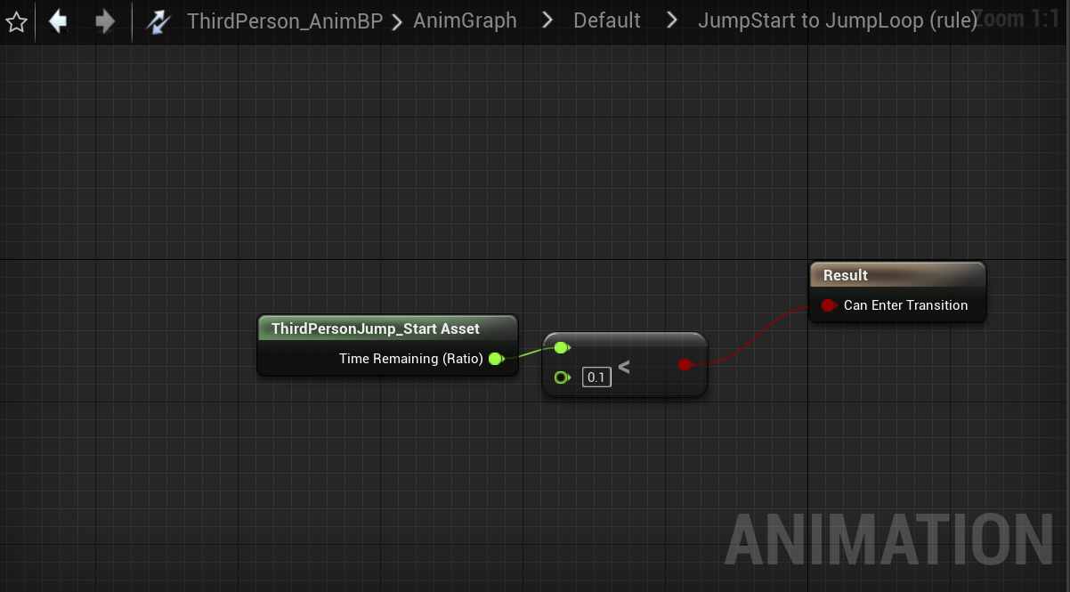jump Loop:当进入开始起跳的状态后,若开始起跳的动画播放超过90%就开始播放JumpLoop的动画。