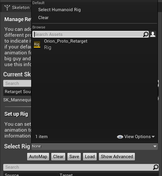 3.进行retarget,将动画映射到自己的角色上,