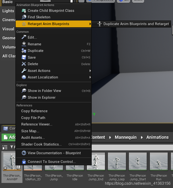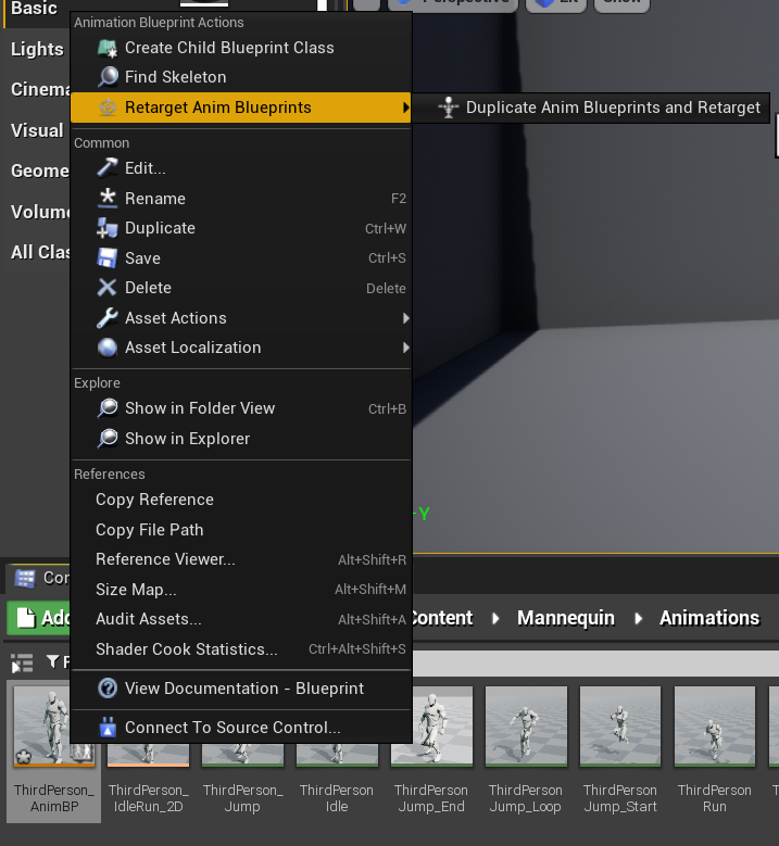做好匹配后,找到机器人的动画蓝图,右键选择retarget Anim BluePrints,对现有的动画序列进行retarget并复制动画蓝图。