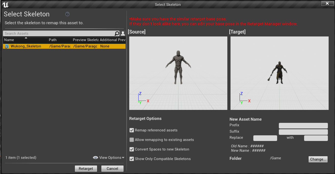 选择刚刚创建的wukong骨架,点击Retarget。