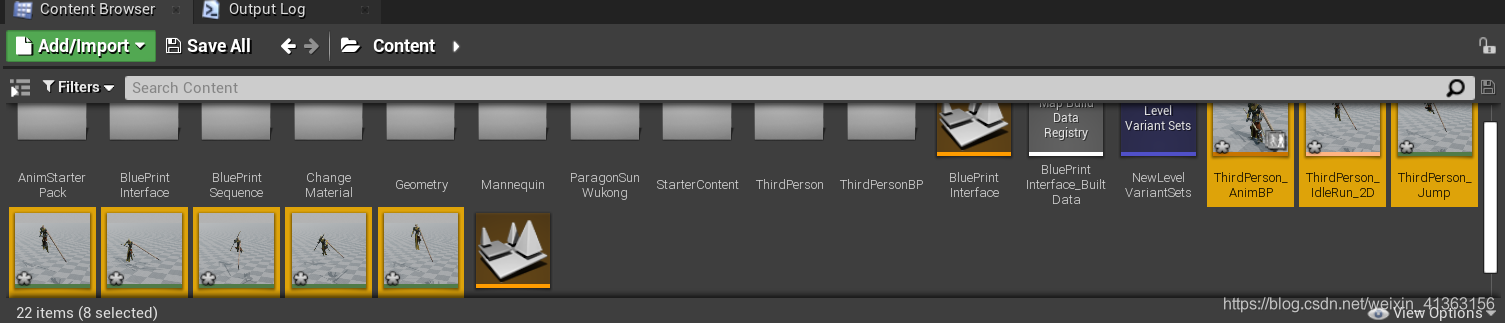 会在Content目录下生成若干动画序列和动画蓝图,