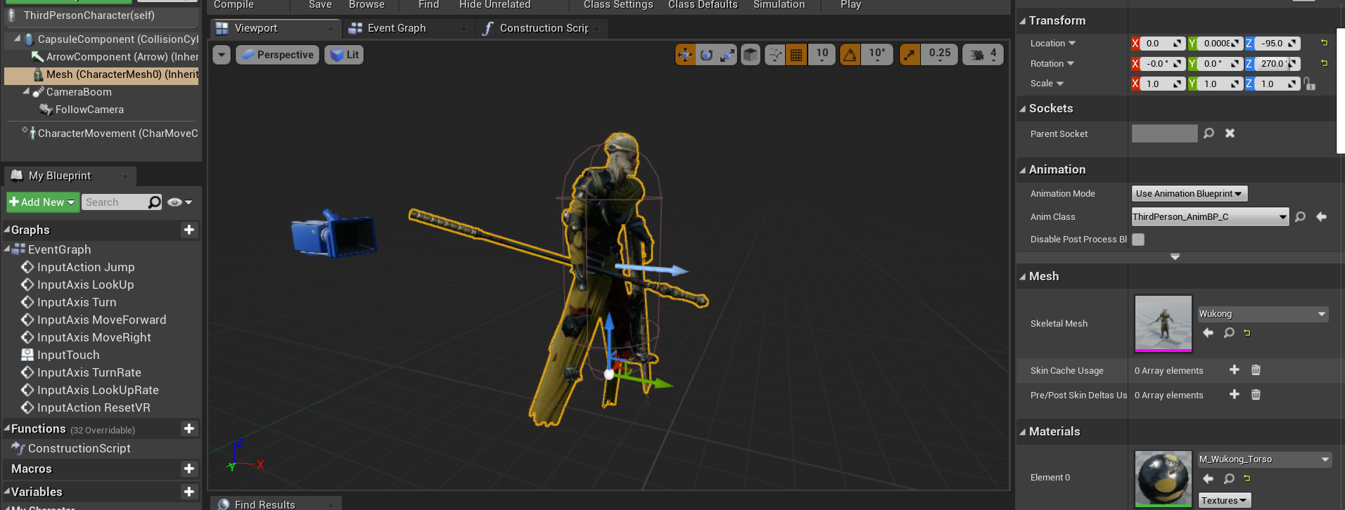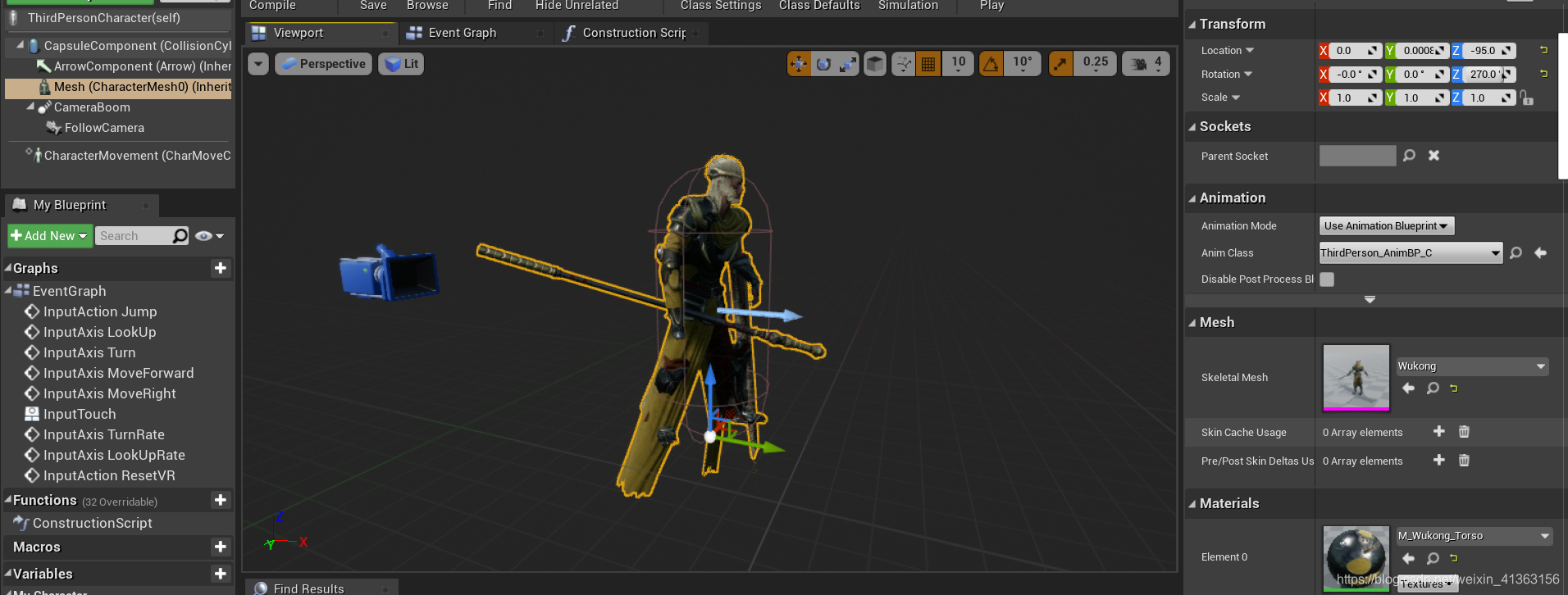 接下来我们就可以替换模板中的mesh和动画蓝图了