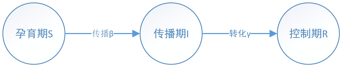 谣言的传播可以分为三个时期:孕育期、传播期、控制期。处于这三个时期的网络结点状态对应于传染病模型中的易感者、感染者、康复者,在某时间戳t时的数量表示为S ( t ) , I ( t ) , R ( t ) S(t),I(t),R(t)S(t),I(t),R(t),结点总数为N ( t ) N(t)N(t)
