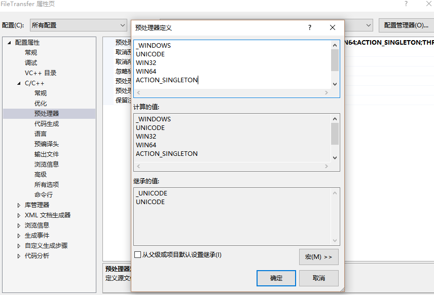 2、C/C++中也与静态库一样,主要配置依赖头文件目录和宏定义。