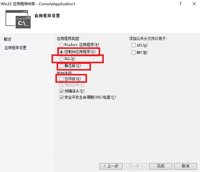 2、静态库就选静态库,动态库就选DLL。如果是应用程序就选控制台应用程序。然后统一选择空项目。避免不必要的文件