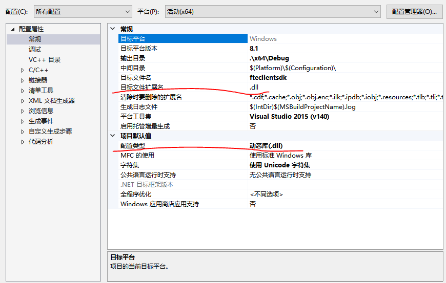 1、与静态库类似,先确定好最上端的配置和平台。当要进行发布时配置应选择Release,平台可选择x64和x86,然后再配置库文件名和输出目录。
