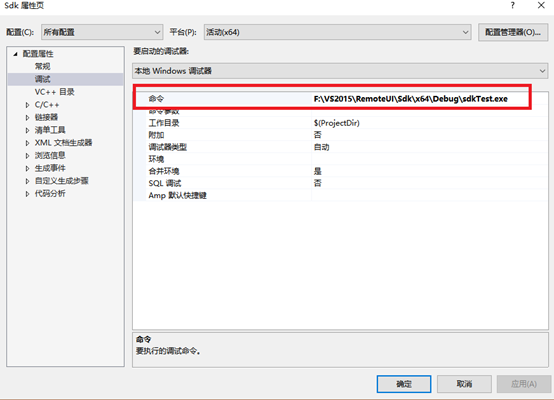 2、在库文件工程的属性中设置调试命令,即设置启动程序为需要调用该库的可执行文件,即可在运行时进入库文件源码进行调试。