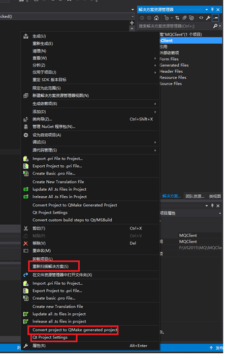 1、导入QT工程,使用convert project to qmake generated project,如果出错,可以选择重新扫描解决方案。Qt Project Settings可以选择不同的QT编译器。