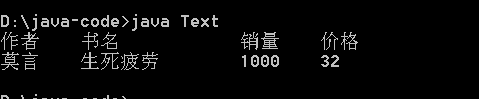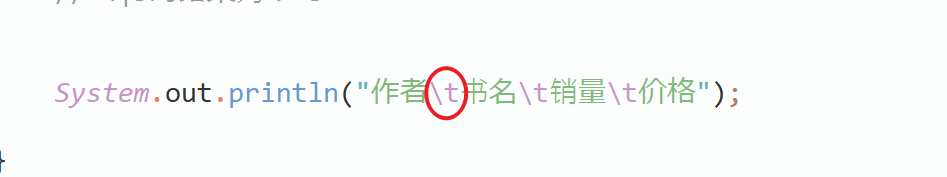 过程分析:Java在运行这个输出语句的时候,先输出来“作者”,然后程序紧接着遇到了"\",Java就知道了这个是一个转义的意思,然后在“\”后面输出来的就是效果
