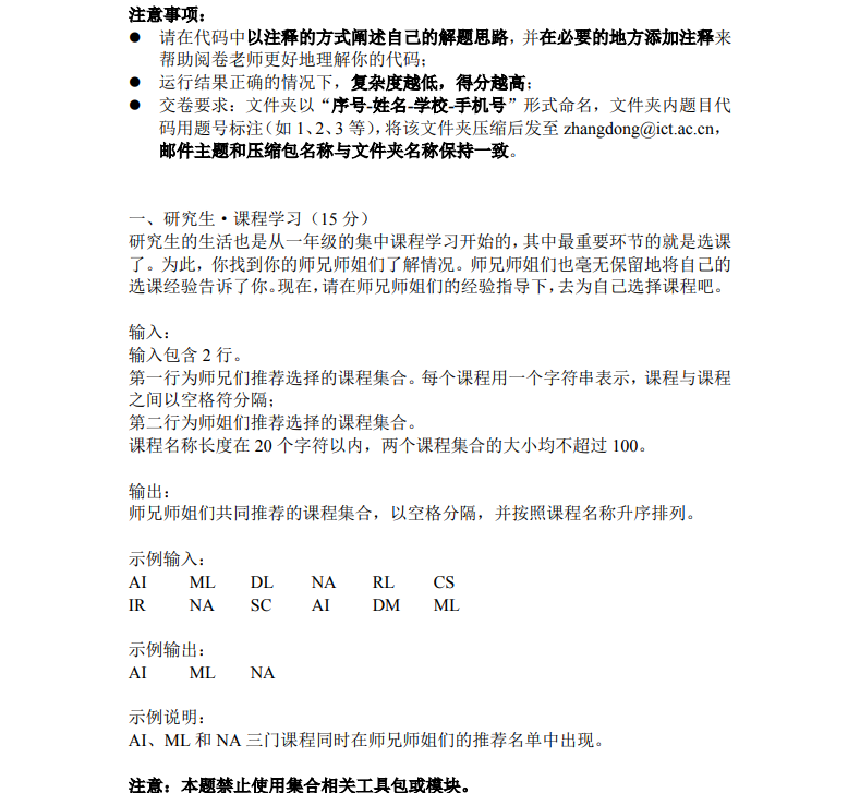 2020 年中科院计算所“计算未来”全国大学生暑期班网络数据科学与技术重点实验室 机试试题