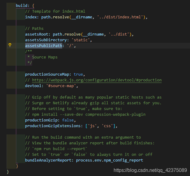修改二:config > index.js (修改assetsPublicPath:'./' ,修改目的是为了解决js找不到的问题)