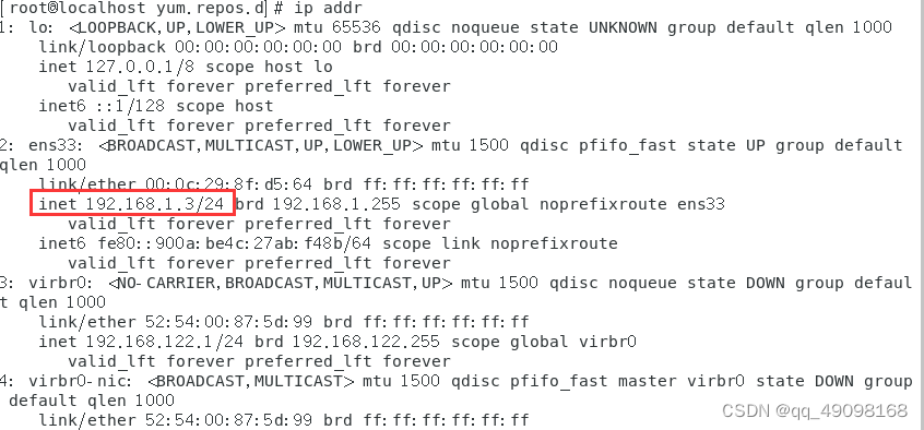 vim /etc/sysconfig/network-scripts/ifcfg-ens33