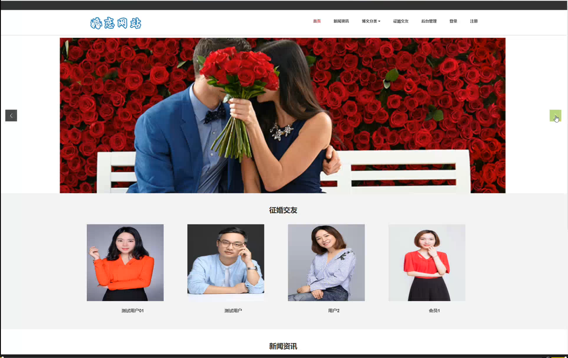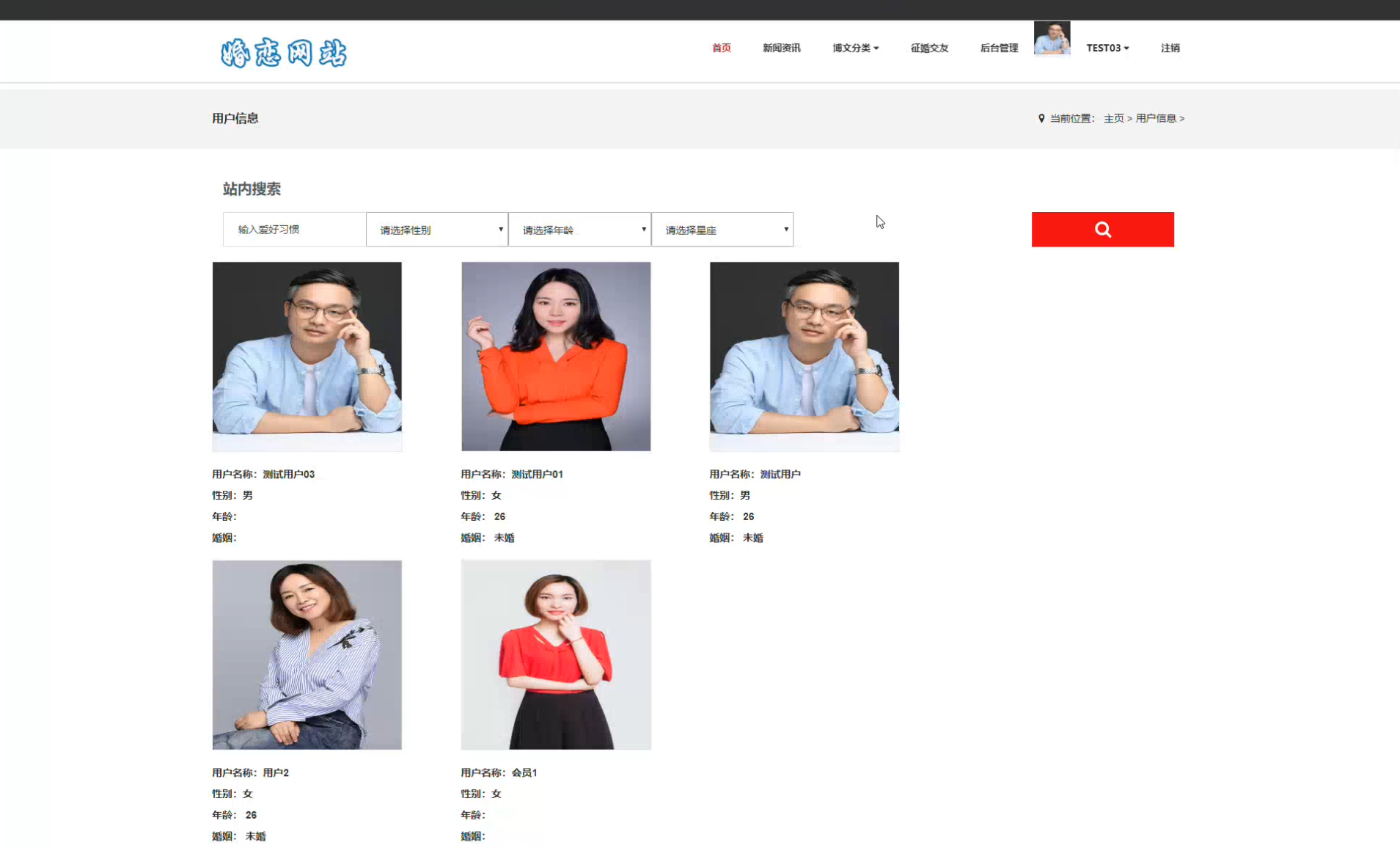 登录功能:网站最主要的服务功能模块,登录网站首先会提示未登陆的用户注册,上传真实相片,信息实名制认证,涉及信息录入,验证等步骤。