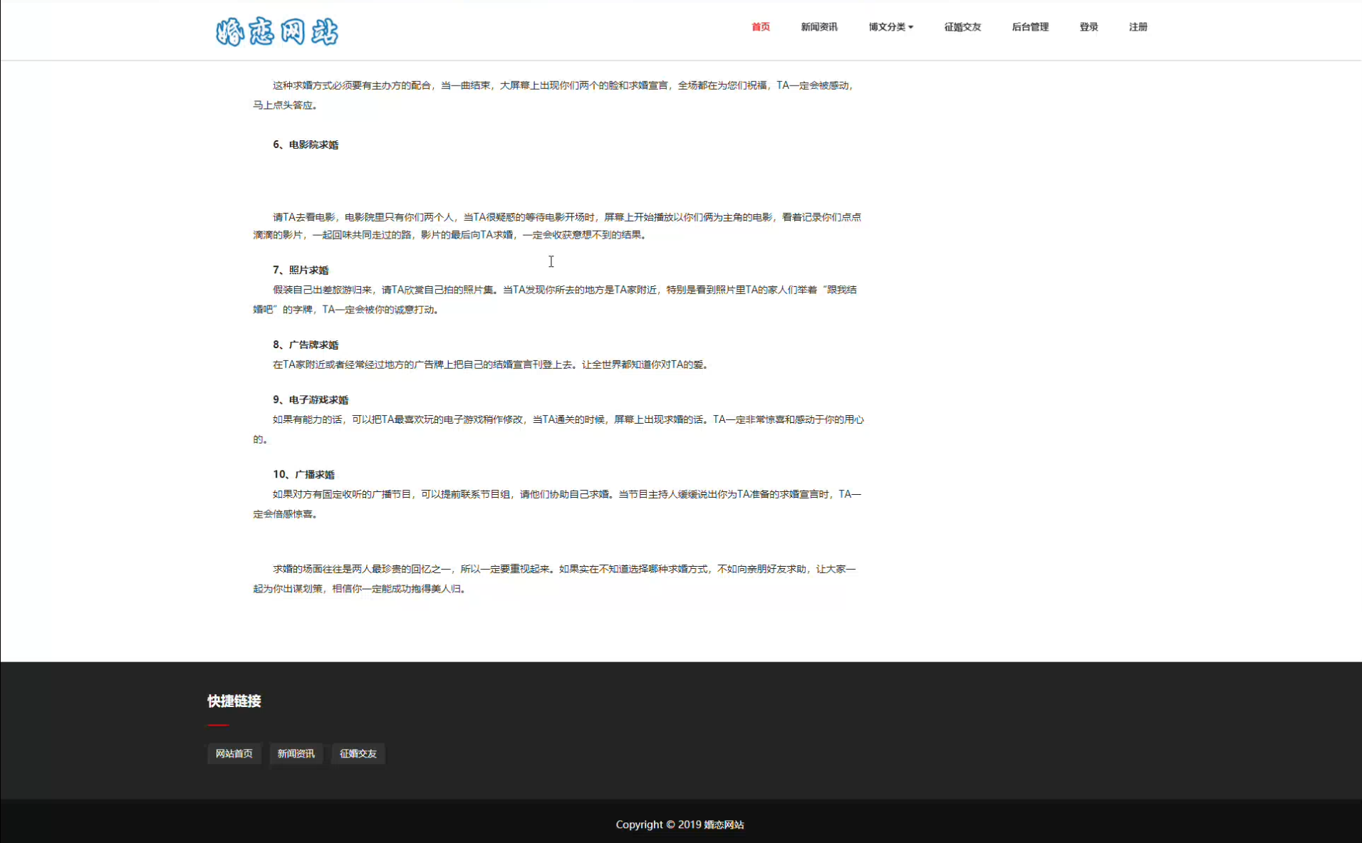 博客功能:用户注册后自动开通网站的私人空间(博客),可以在网站撰写心情日志、情感随笔等,文章允许留言和评论。