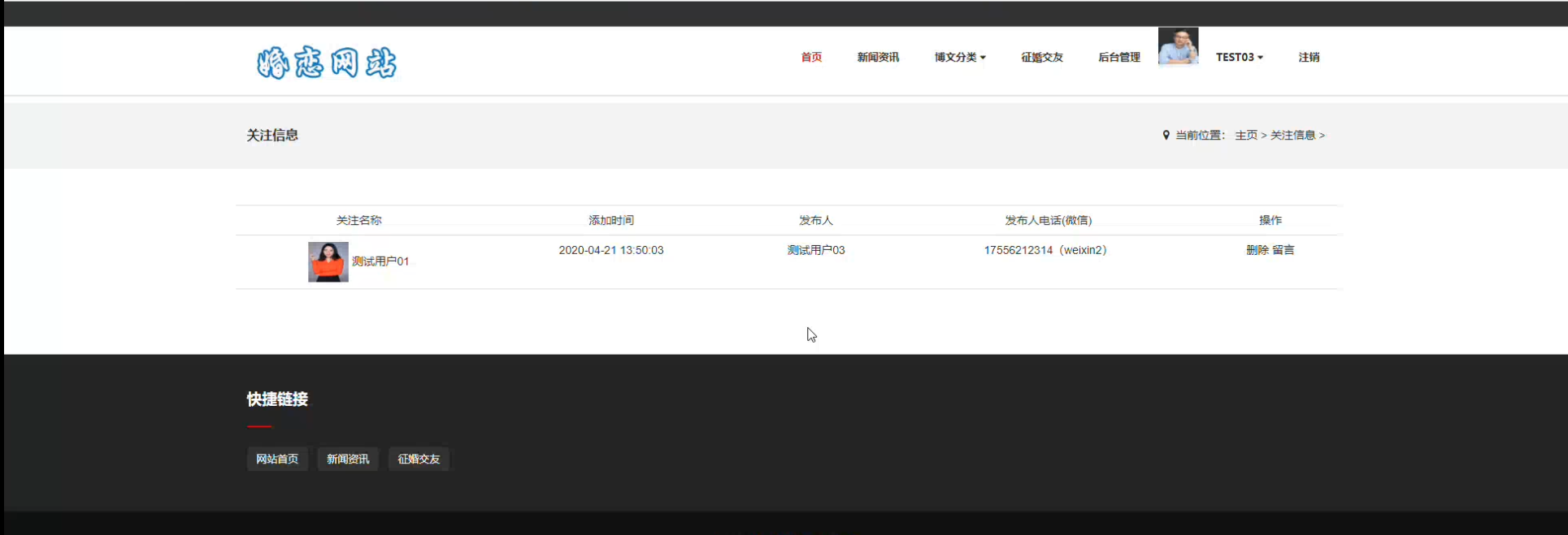 会员站内交互 :网站第三大服务功能,为用户提供关注其他用户(主要是异性)、像其他用户“打招呼”,用户可以对心仪的异性做“关注”、发消息等各种操作,丰富网站的娱乐性,是婚恋交友网站的主要目的。