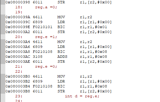 之前一直以为位域的操作就像变量的读写操作一样,同MOV指令一样一条指令搞定,结果不是。