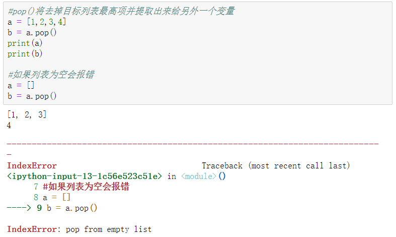 3.13 返回最高位的变量,之后删除原列表中的最高位内容 pop()
