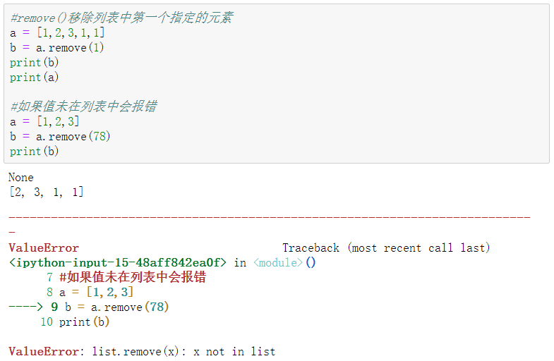 3.14 移除列表中第一个(从左算起)指定的值 remove()