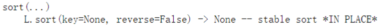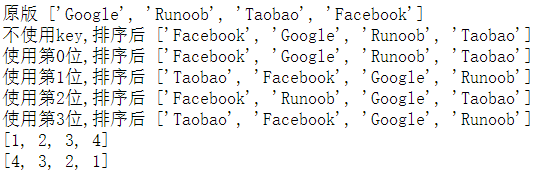 #可选参数为key与reserver,参数key默认为None,参数reverse默认为False