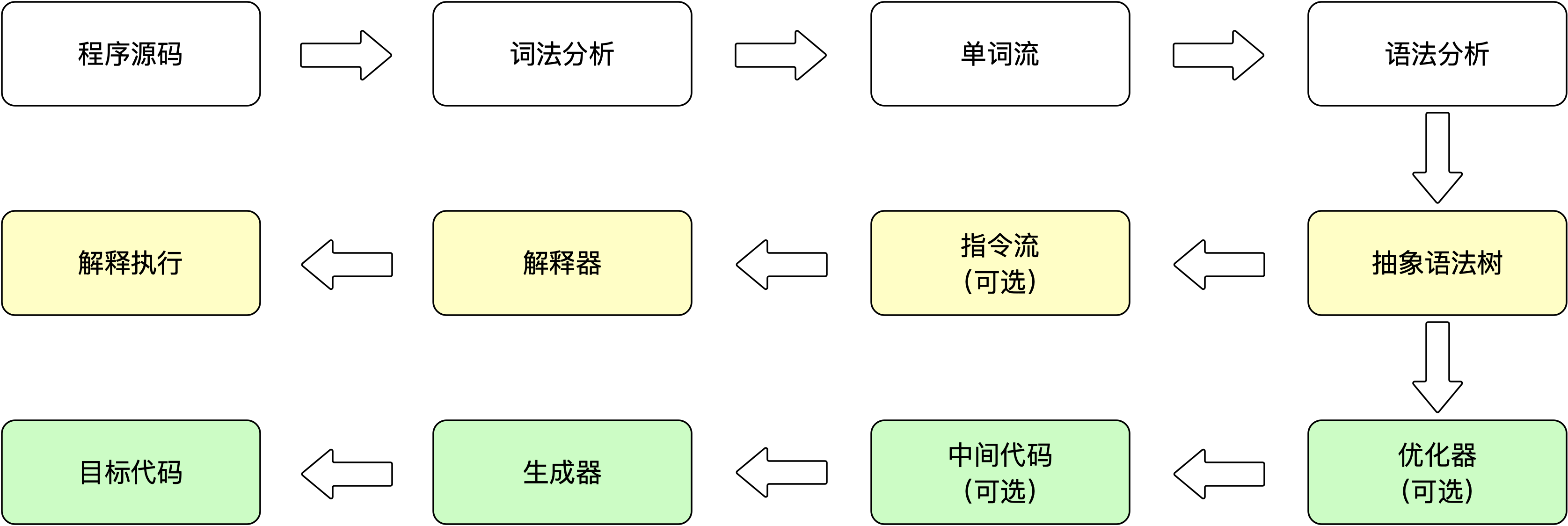 无论是解释执行还是编译执行,无论是物理机还是虚拟机,对于应用程序,机器都不可能像人一样阅读、理解,然后获得执行能力。大部分的程序代码到物理机的目标代码或者虚拟机执行的指令之前,都需要经过下图中的各个步骤。下图中最下面的那条分支,就是传统编译原理中程序代码到目标机器代码的生成过程;中间那条分支,则是解释执行的过程。