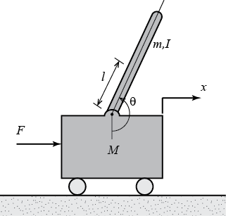 在这个问题中,如下图所示,带有倒立摆的小车被冲击力“撞上”了