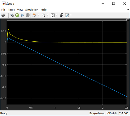 - 首先,打开先前生成的Simulink模型。您可以通过右键点击 Pend_Model.slx 或 Pend_Model_Simscape.slx 然后选择“ 将链接另存为...” 来下载它们。我们将使用Simscape模型来利用其提供的动画功能。