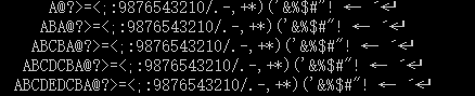 printf("\n"); //每行的空格和字母的循环结束后,才进行换行