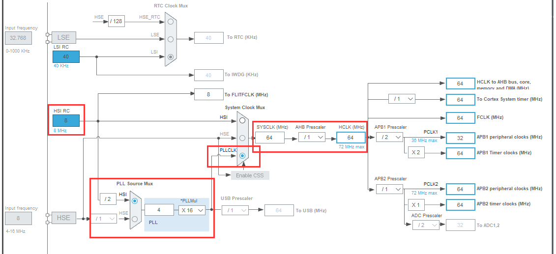 - Tclk为系统时钟频率 64MHZ = 64us