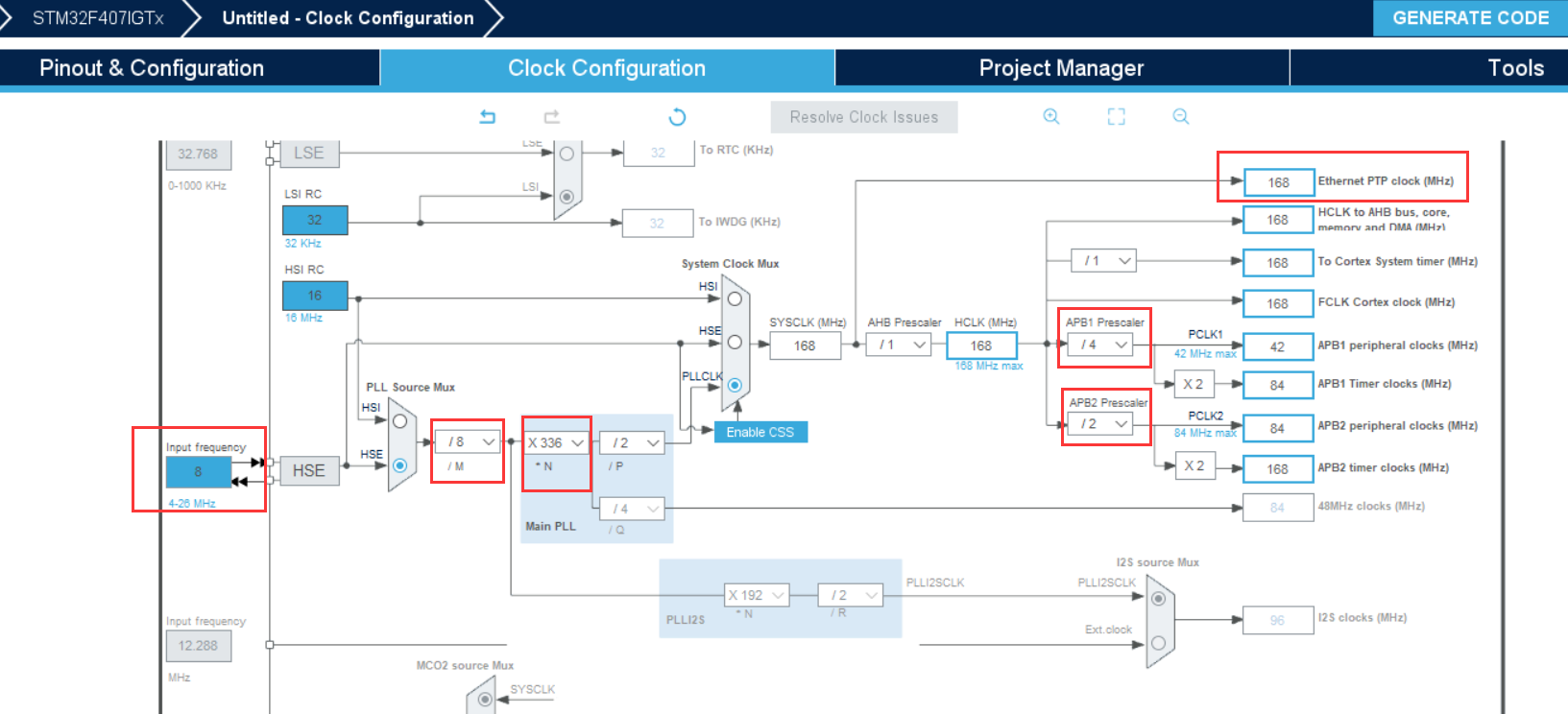 由这个图可见,这里配置的是定时器产生中断的频率,然后再跟据频率与时间的关系推出定时的时间。