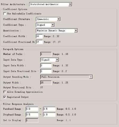 通过这个设置,我们可以得到FIR滤波器的基本参数功能如下所示: