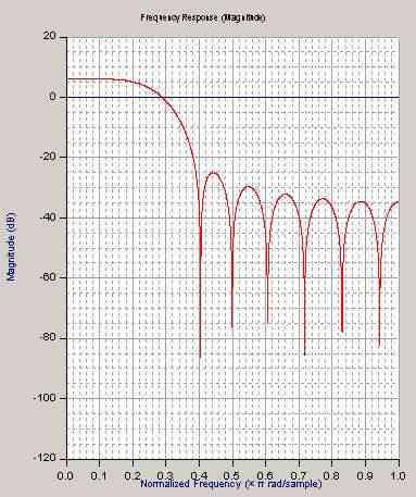 这里成形滤波器的设计主要通过IP核来设计,通过MATLAB我们可以得到滤波器的系数:
