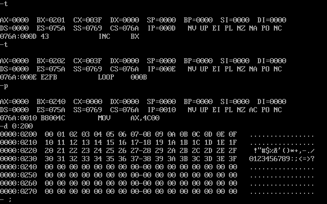 ;向内存0:200~0:23f依次传送数据0~63(3fh)